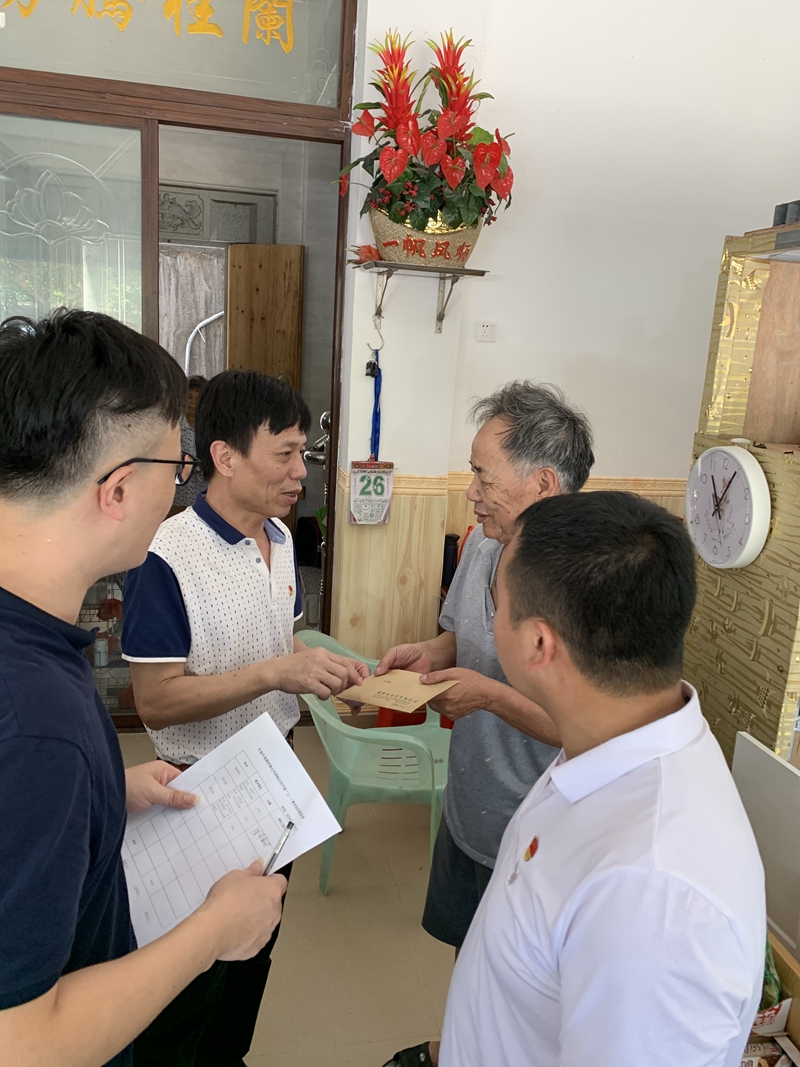 走訪中,方妙雙一行深入貧困戶家里,傾聽抗洪救災(zāi)后患病的黨員陳鎮(zhèn)周家屬、參加抗越戰(zhàn)爭(zhēng)的老黨員陳木樹、參加抗美援朝戰(zhàn)爭(zhēng)的陳木林等心聲,送上慰問金,感謝他們?yōu)辄h的建設(shè)發(fā)展作出的積極奉獻(xiàn),并鼓勵(lì)其振奮精神,勇于面對(duì)生活的困難,繼續(xù)發(fā)揮模范作用,以新?lián)?dāng)新作為帶動(dòng)農(nóng)村振興。