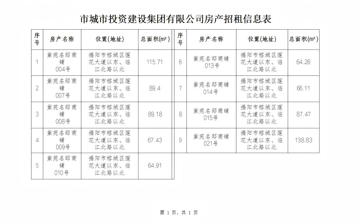 市城市投資建設(shè)集團(tuán)有限公司房產(chǎn)招租信息