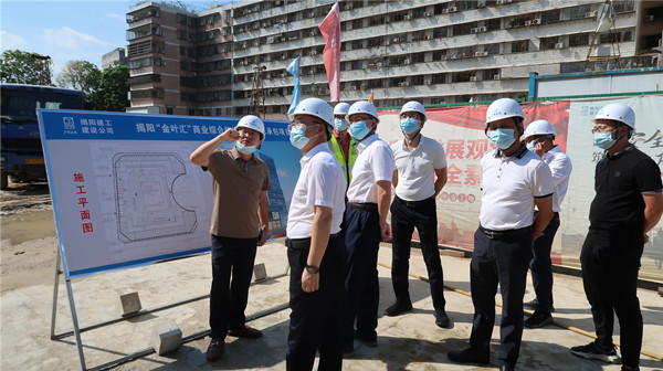2022年9月26日,市政府副市長(zhǎng)羅毅一行到揭陽(yáng)“金葉匯”商業(yè)綜合體項(xiàng)目工地視察,在現(xiàn)場(chǎng)聽取市金葉公司黨支部書記、董事長(zhǎng)、總經(jīng)理卓少琳關(guān)于“金葉匯”建設(shè)情況的匯報(bào),詳細(xì)詢問項(xiàng)目施工進(jìn)度、施工質(zhì)量、安全生產(chǎn)工作情況,要求進(jìn)一步創(chuàng)新工作舉措,落實(shí)安全生產(chǎn)、文明施工,嚴(yán)把工程質(zhì)量關(guān),在保證質(zhì)量的前提下加快工程進(jìn)度,確保早日完成項(xiàng)目建設(shè)。